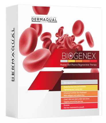 BIOGENEX to system zamknięty z żelem separującym do pozyskiwania osocza bogatopłytkowego wraz z instrumentarium zabiegowym. Biogenex poprzez separację osocza od części morfotycznych krwi zwiększa stężenie czynników wzrostu i komórek macierzystych. W efekcie otrzymujemy silnie stężony koncentrat PRP o działaniu wybitnie regenerującym i odmładzającym, który ponownie podajemy w ciało pacjenta. Powoduje to uruchomienie szeregu reakcji autonaprawczych, aktywizację fibroblastów do syntezy kolagenu, aktywną angiogenezę oraz stymulację mezenchymalnych komórek macierzystych.