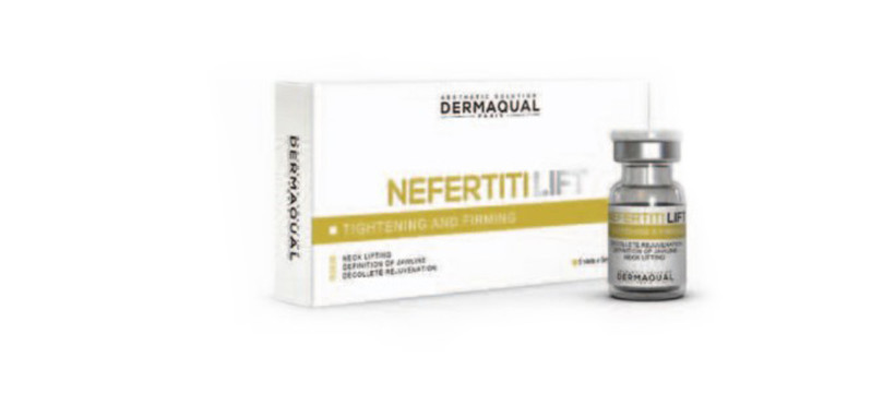 Neferttiti Lift to produkt mezoterapeutyczny do miękkiego liftingu skóry.Ten meso-koktajl natychmiastowo nawilża, napina oraz konturuje twarz oraz okolice szyi, podkreślając przy tym linię dekoltu. Dzięki zawartości DMEA produkt widocznie liftinguje oraz wykazuje silne właściwości przeciwstarzeniowe. Produkt poprawia elastyczność skóry i wyraźnie wygładza wszelkie zmarszczki.Krzem organiczny stymuluje aktywność fibroblastów i działa silnie zagęszczająco. Unikatowa formuła produktu stymuluje wytwarzanie kolagenu , inicjuje procesy komórkowe , zwiększa objętość tkanek.NEFERTITI LIFT ma niesamowite właściwości liftingujące twarz, szyję oraz dekolt, to idealny preparat do stosowania w terapii przeciwstarzeniowej.